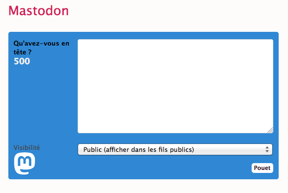 Le formulaire de Pouet manuel permet de "modifier la visibilité de chaque message envoyé au cas par cas", mais il ne permet pas de choisir le compte destinataire (alors que la fonction pouet le permet) et c'est donc le compte par défaut qui reçoit le pouet. Cf formulaire actuel : https://contrib.spip.net/IMG/png/mastodon-4.png